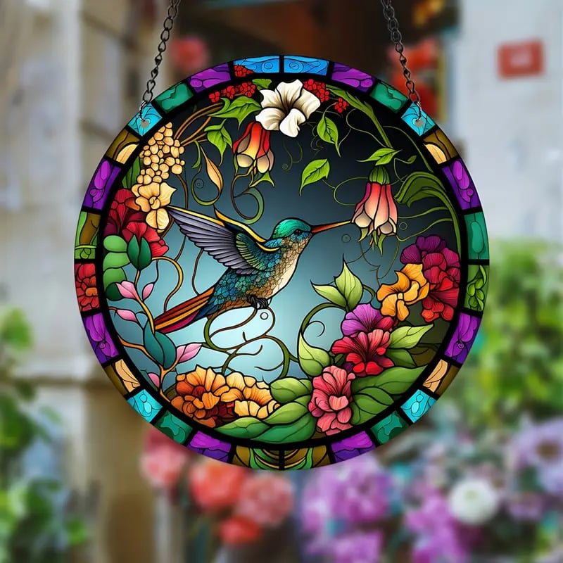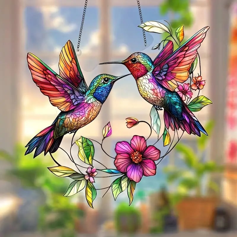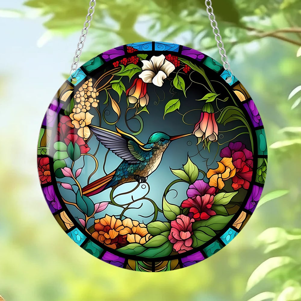 Hummingbirds with Flowers Suncatcher Ornament🐦