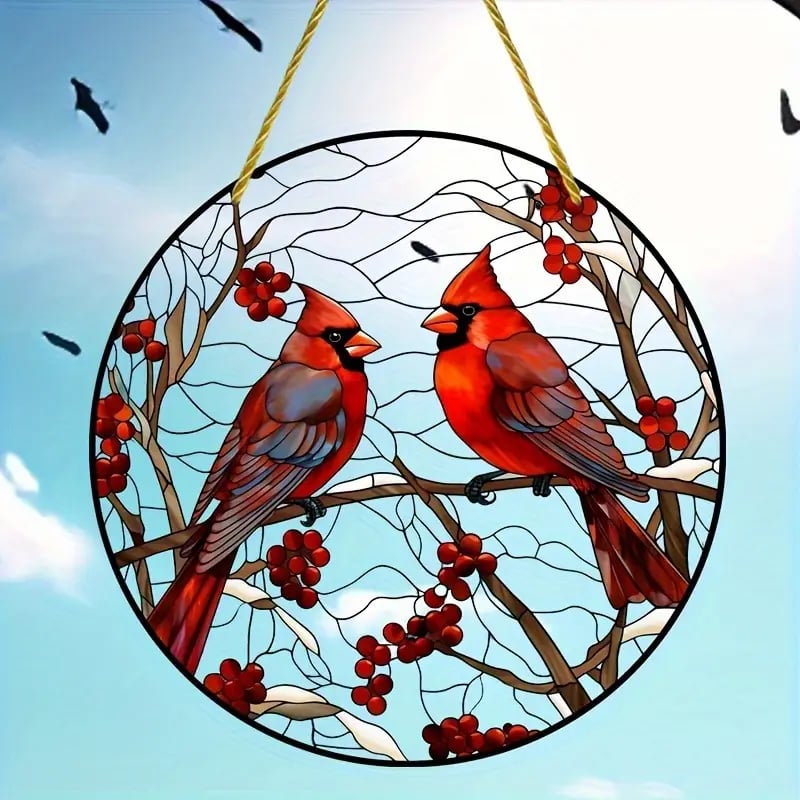💖Heart-Shaped Cardinal & Bluebird Suncatcher Hanging Decor🐦