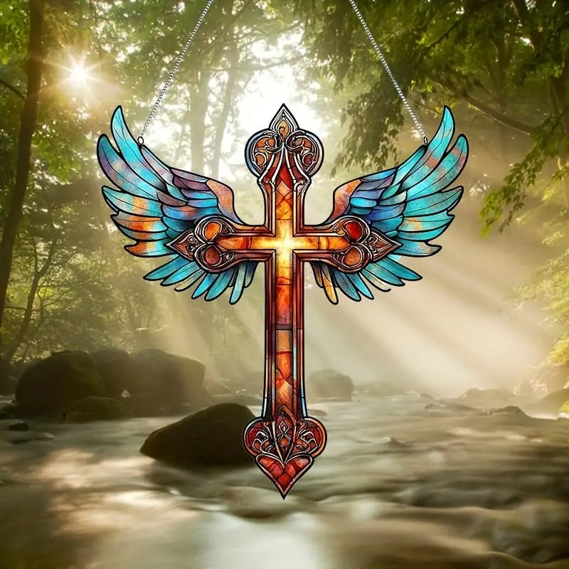 ✝️💜Purple Rose Cross Suncatcher Hanging Decor