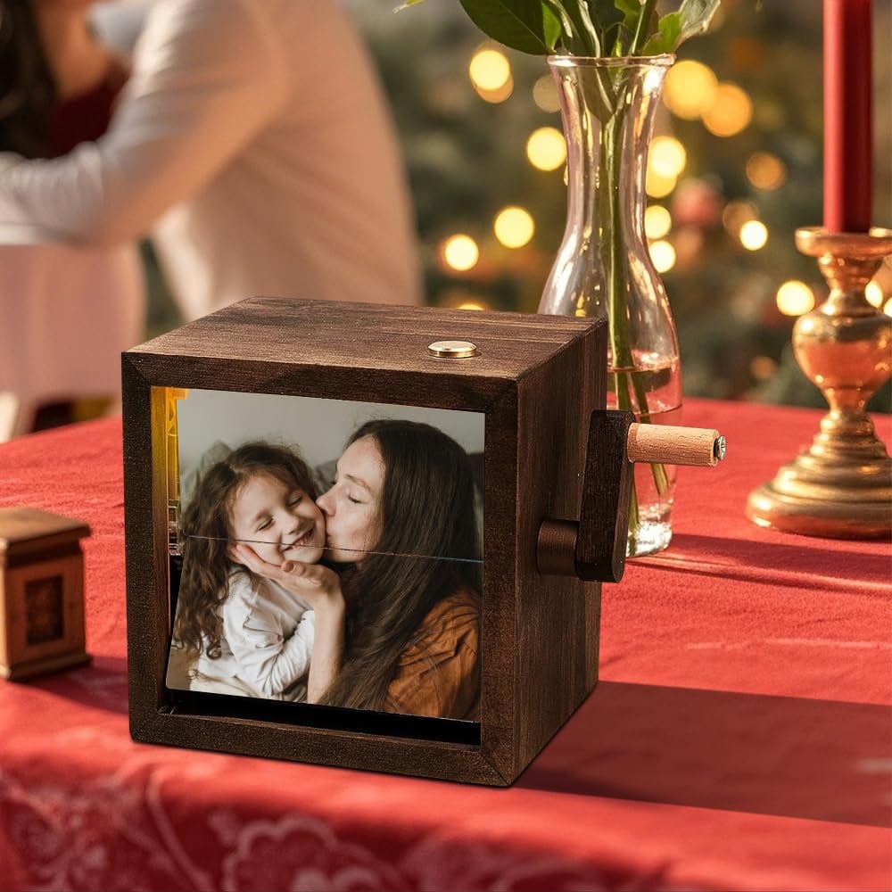 Personalized Flip book Photo Frame, Custom Hand-Cranked Wooden Animation Album