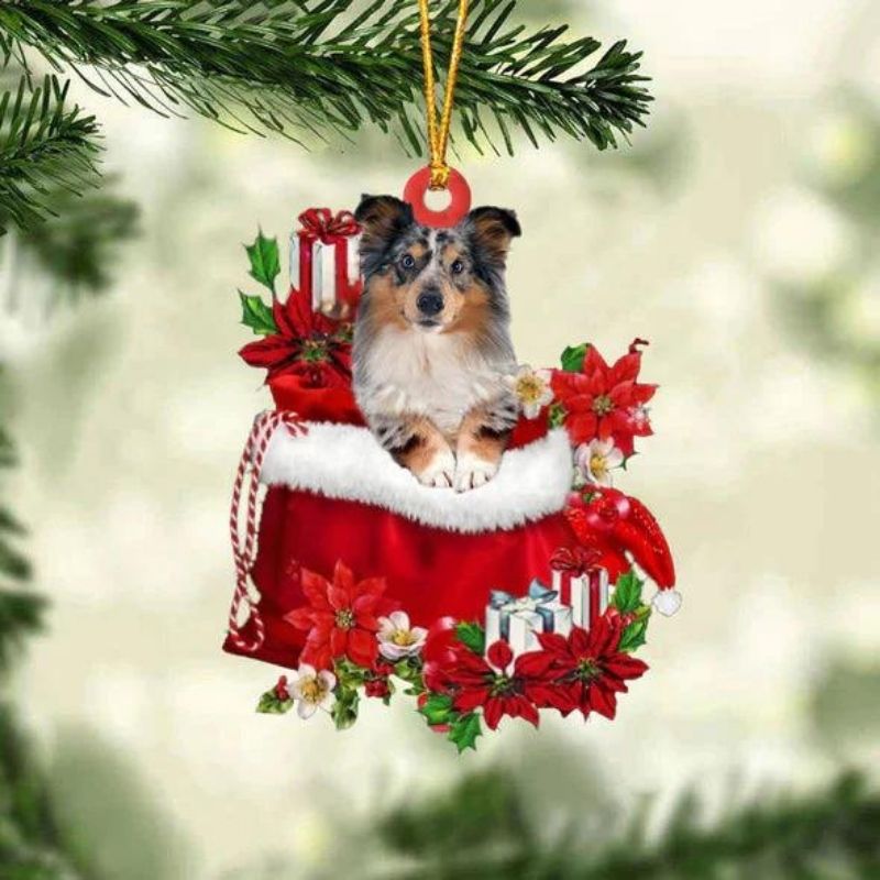 Shetland Sheepdog In Gift Bag Christmas Ornament GB066