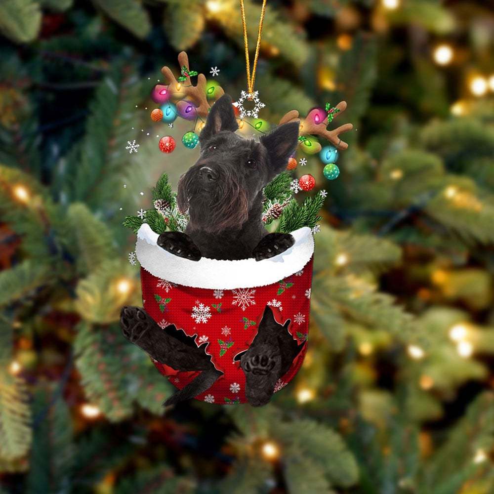 BLACK Miniature Schnauzer In Snow Pocket Ornament
