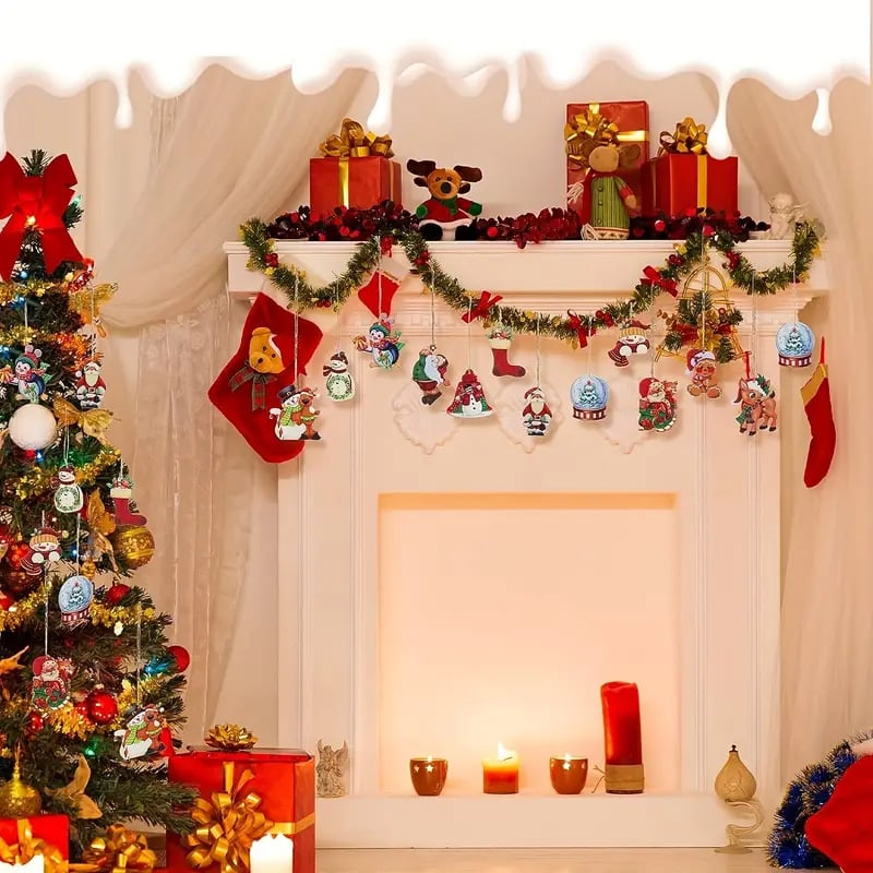 Wooden Christmas Tree Decorations Pendant Set (12pcs)