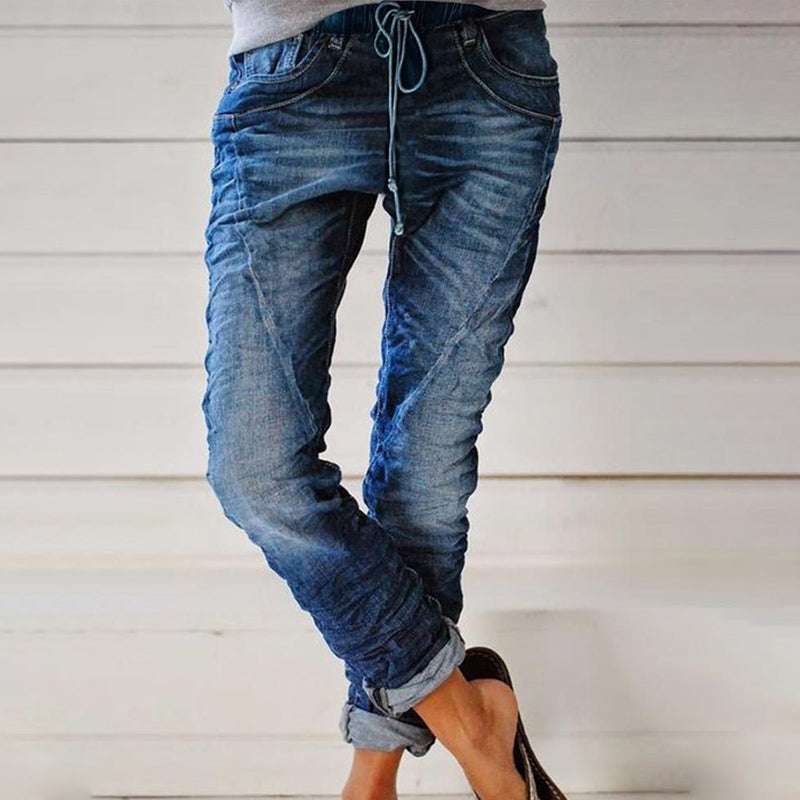 Ripped Drawstring Elasticated Waist Washed Jeans