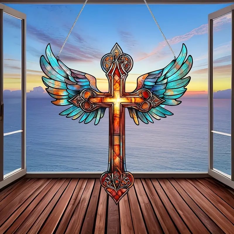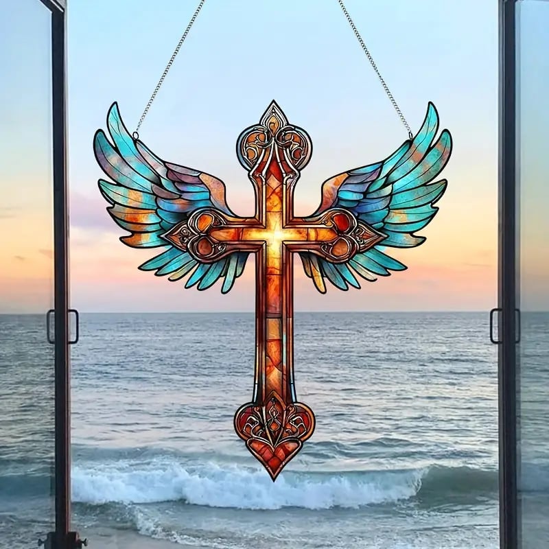 ⛪🪽Hang this holy cross suncatcher to infuse strength and light into your home!🌟