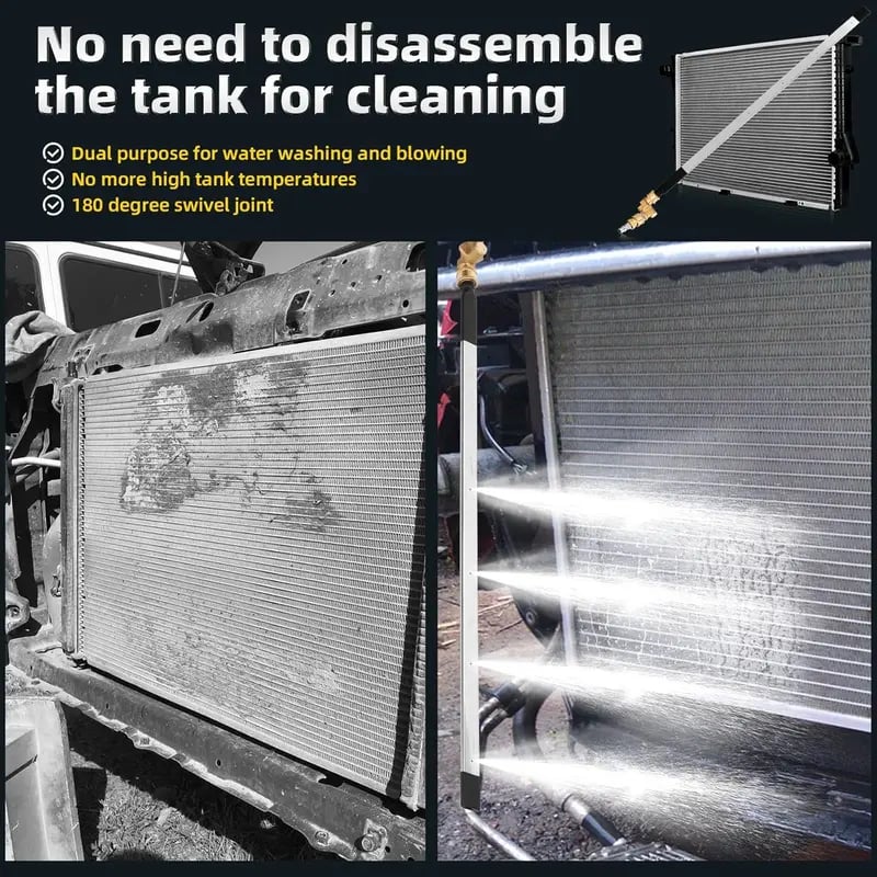 Removes accumulated dust, dirt, leaves, and insects from radiator fins, preventing overheating and maintaining optimal cooling system performance. Essential for home garages, repair shops, and RV maintenance.