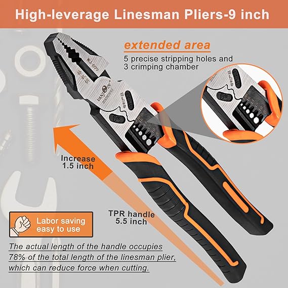 ◆4-in-1 Multi-Function Wire Pliers - FUTE Wire Pliers is designed with wire stripper+crimper+cutter+pliers all in one.It’s professional designed for lineman.