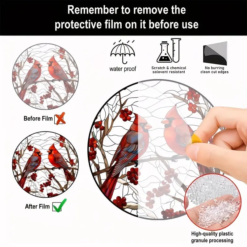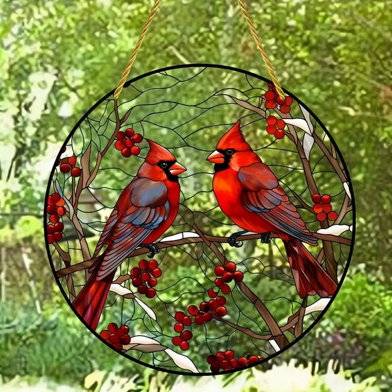 🐦【Exquisite Cardinal Bird Design】The sun catcher pendant features two cardinal birds facing each other and fruit tree pattern, exuding a harmonious blend of natural elements. The exquisite cardinal bird image allows you to feel the charm of cardinal bird and nature every time you watch it.