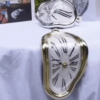 Add a surreal and elegant feel to your home or office with our Abstract Melting Clock. This very unique timepiece is reminiscent of surrealist art, with a curved surface that adds a melting illusion over whatever shelf or desktop you place it on top of.