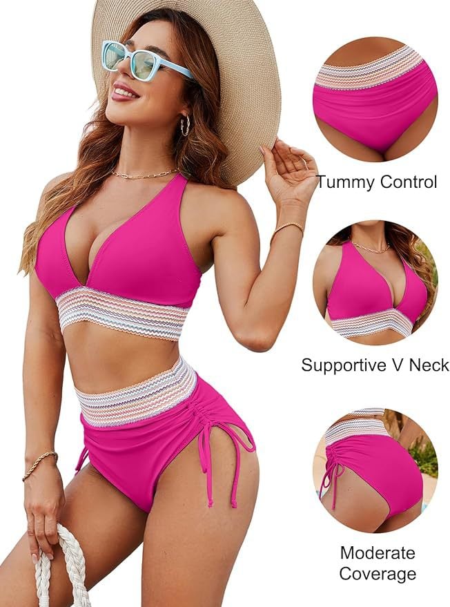 The high waisted bikini offers tummy control, ruched, drawstring, and wide waistband,creating a slimming effect and highlighting your waistline.With moderate coverage, you can feel confident and comfortable.