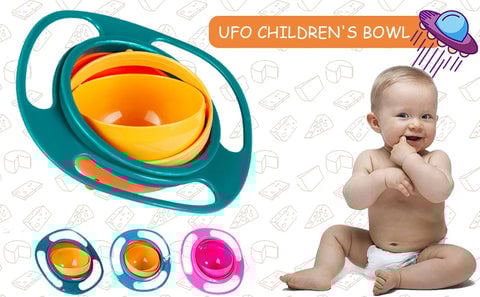 - INNOVATIVE ANTI-SPILL GYRO BOWL - The Gyro Bowl comes with anti spill design where the inner bowl rotates 360° in gyroscopic motion to keep dry food inside & avoid spilling. It also has 3 handles for easy carrying & lid to cover food when not in use.