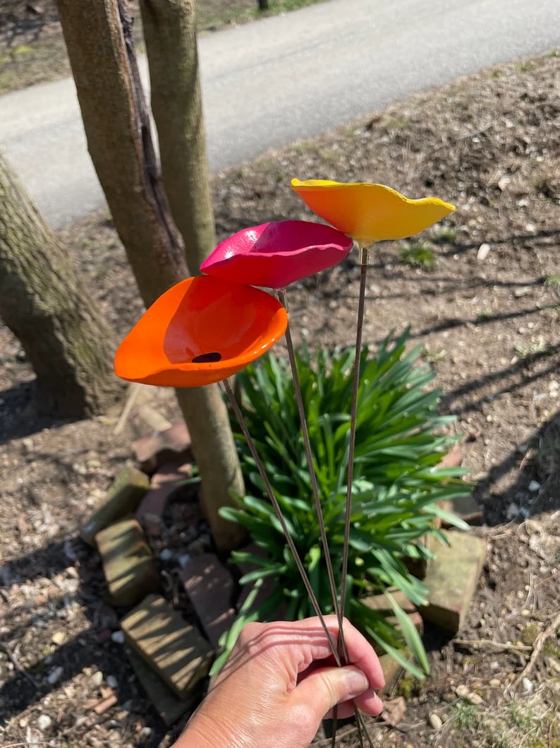 Size measures approx. 2” wide x 1” high x 1" deep. Item comes with a 16" metal rod so it’s ready to plant and enjoy!