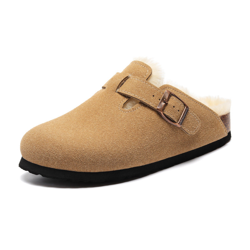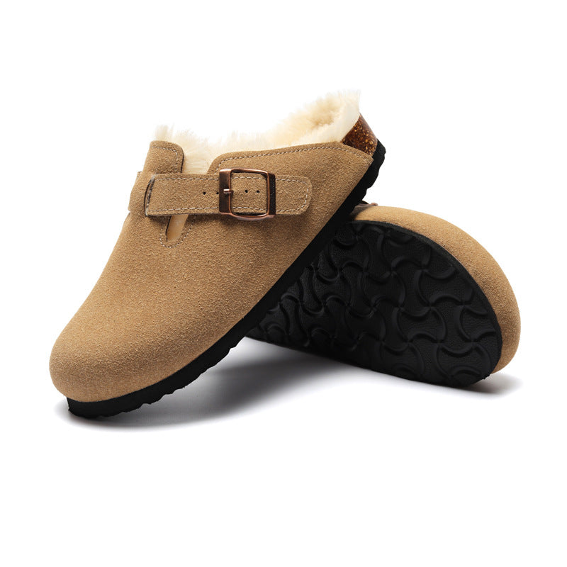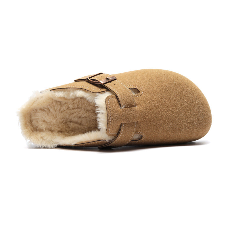Round head autumn and winter non-slip warm and comfortable flat bottom half slippers—Unisex