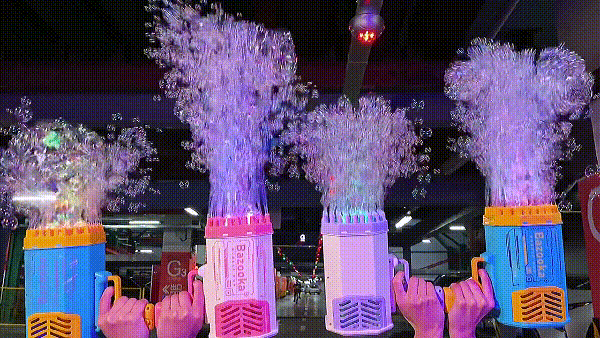 The bubble hole can spray 7000+ colorful bubbles flying in the sky every minute. When you pull the trigger, bubbles will be ejected, the muzzle lights.