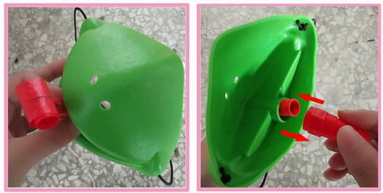 - Blow through the tube in the mask to shoot the tongue out