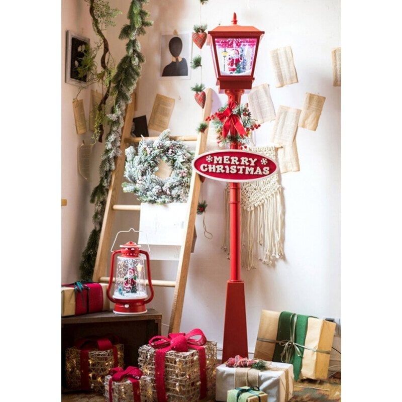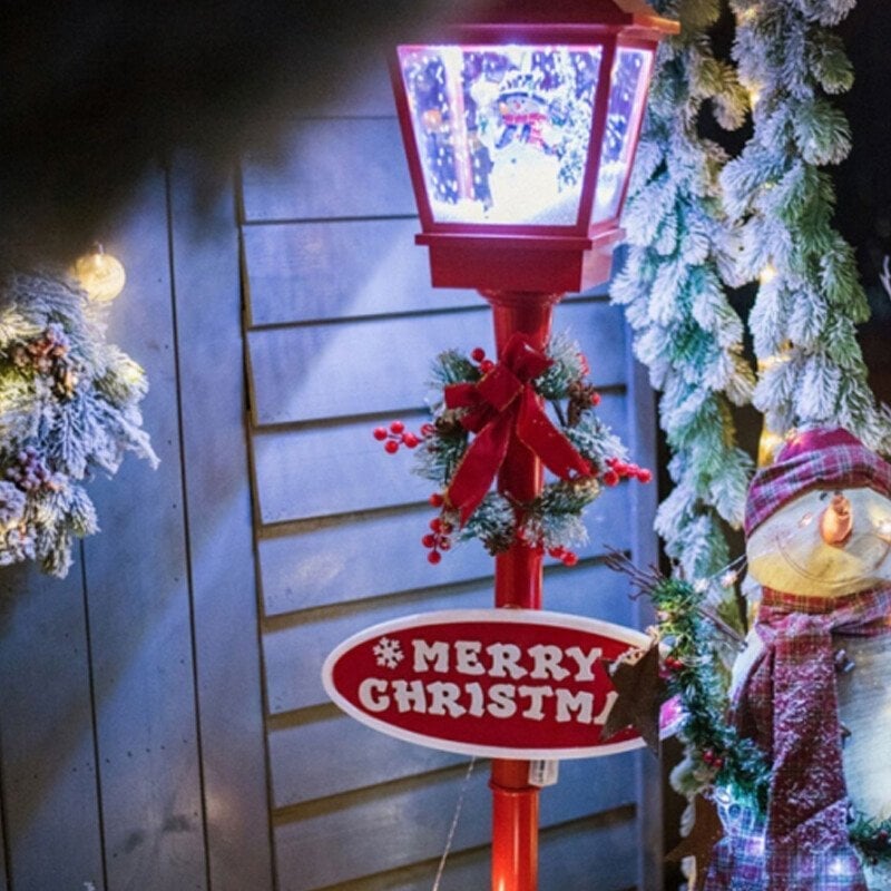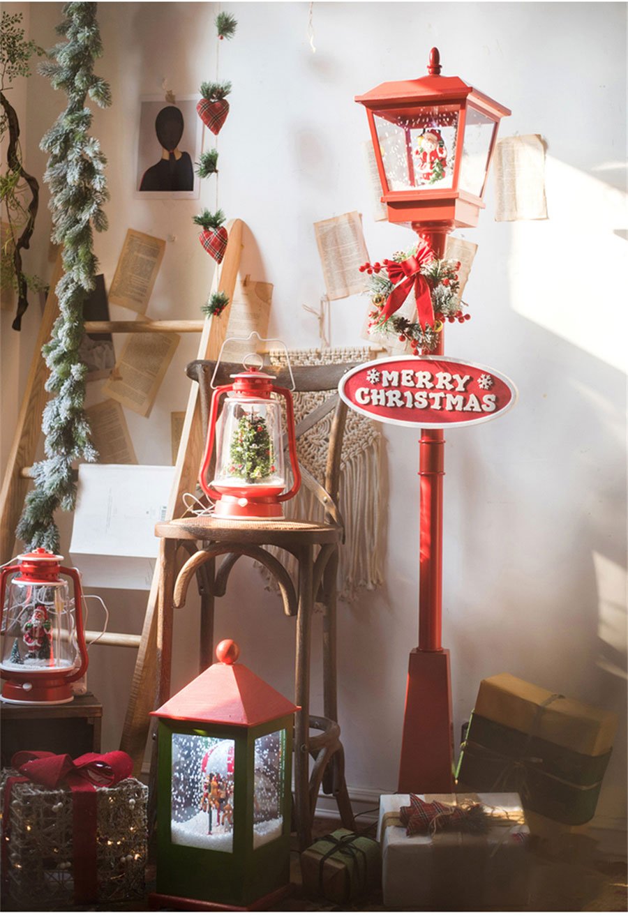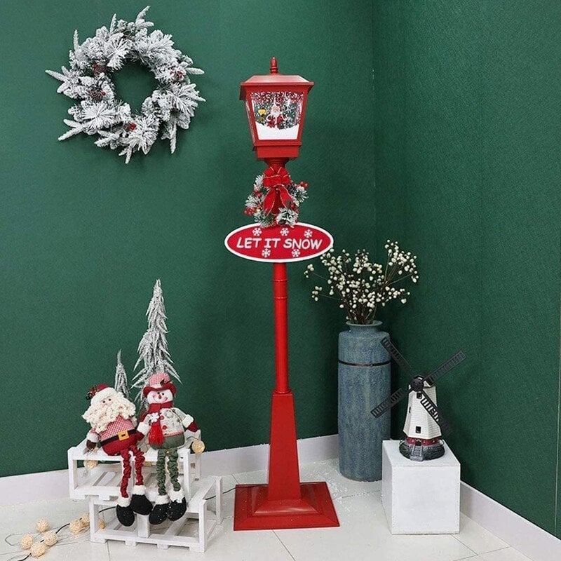It’s snowing! And lighting! Snowing Musical Lighting Christmas Street Lamp with Santa Claus. With LED lights inside, even can be used for lighting.