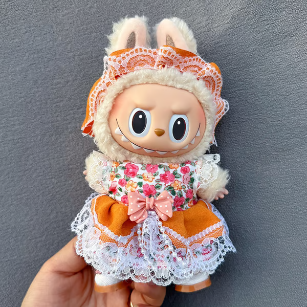 🧸Complete 3-Piece Costume Set This adorable ensemble includes everything to dress up your 17cm (6.7") Labubu doll: headband, dress, and matching shoes – no additional accessories needed! Perfect for display or creative photoshoots.