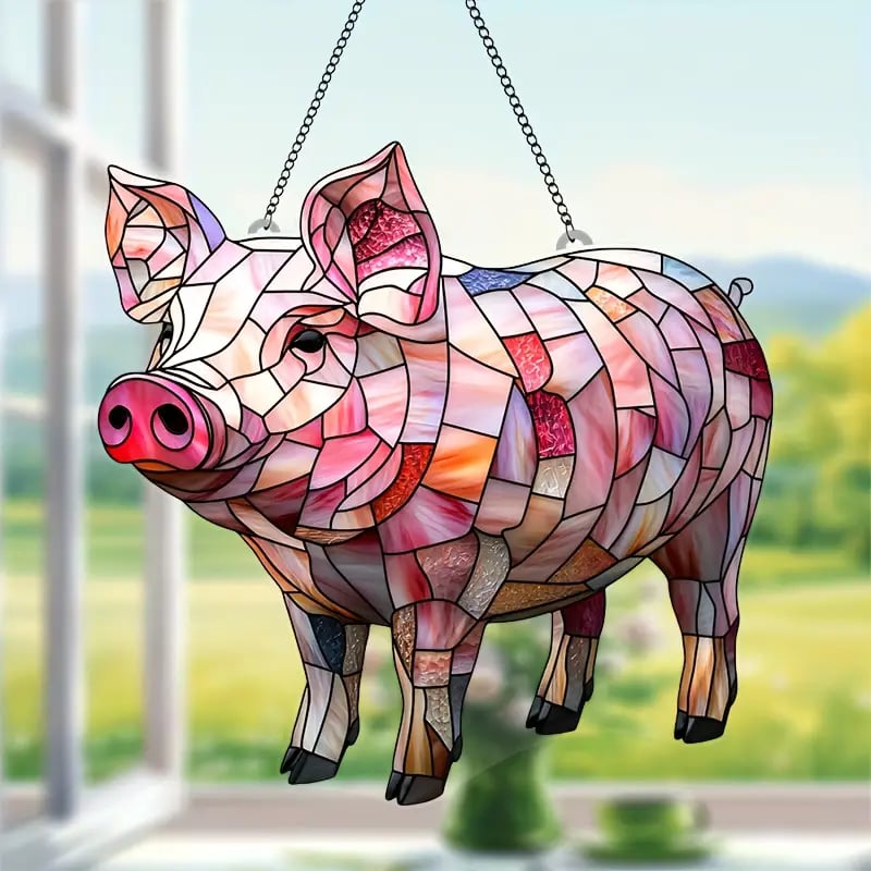 🌾🥰Embrace farm life and spread happiness with our fun pig suncatcher!🐖