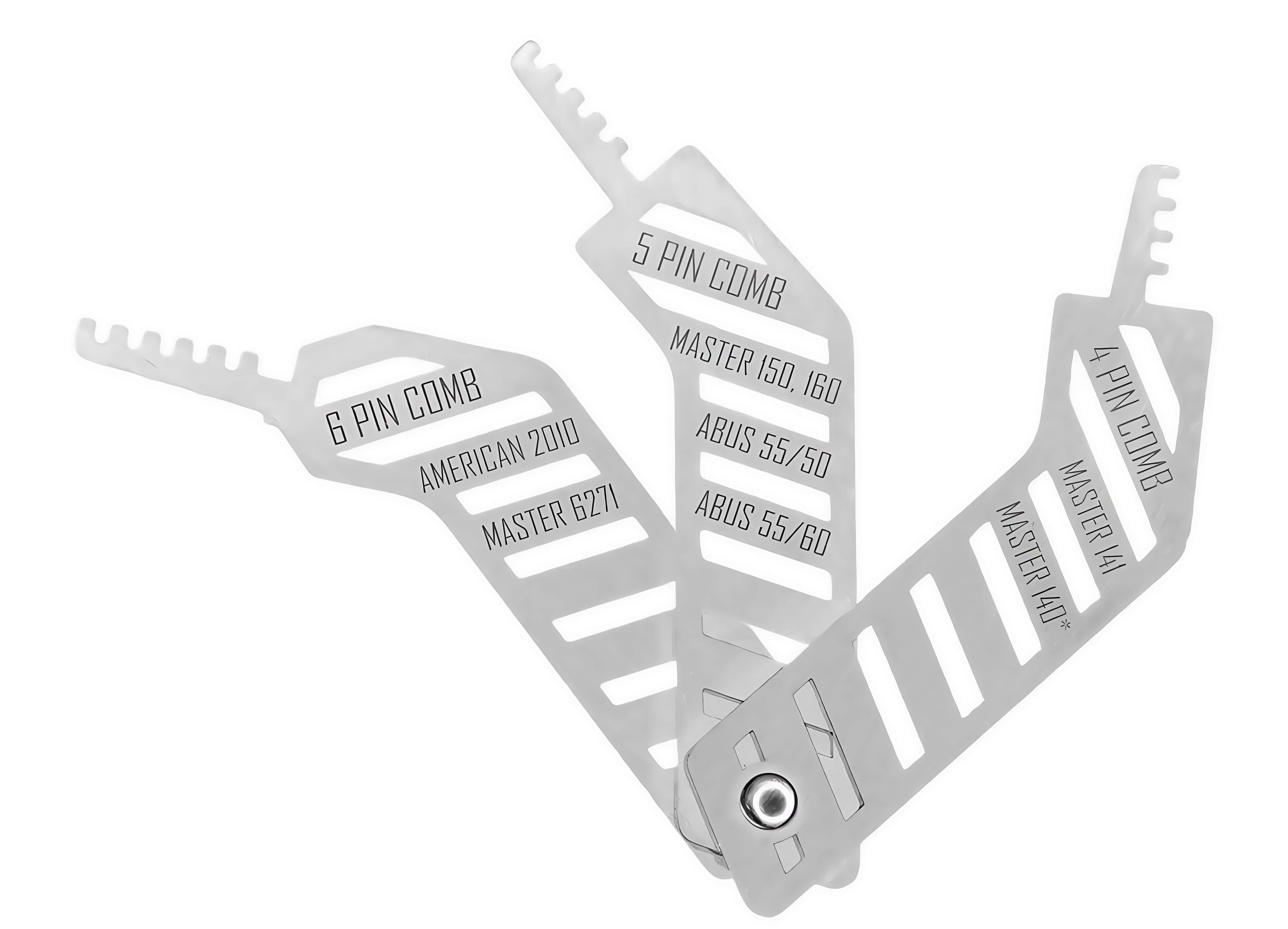 While many locks that can be combed have different pin spacing and depths, the Combs were specifically designed to open the most common locks that are vulnerable to comb picking, maximizing its capability, speed of use, and efficiency. Furthermore, each comb has the make and model of vulnerable locks on the handles for easy reference.
