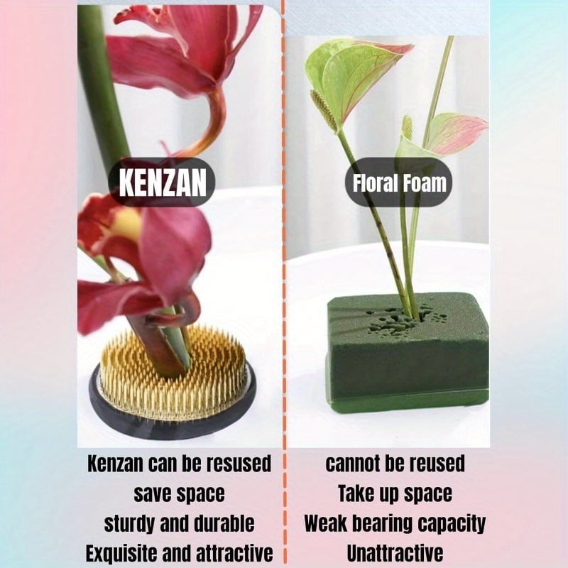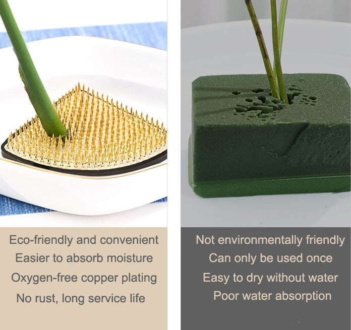 🌸Jianshan Flower Arranger----The pin holder is made from a heavy metal flower alloy base with spiked flower pins to hold the flower stems in place, and includes a rubber gasket that fits around the base to prevent scratches or damage to the vase.