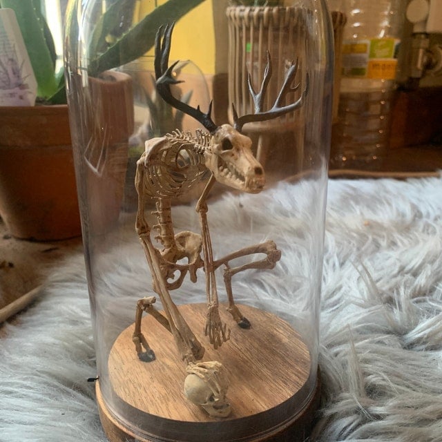 It measures about 8 inches (20cm) high by 4 inches(10cm) high. This skeleton is printed in resin (ABS-Like wich has theoretically the same mechanical resistance as the lego plastic).