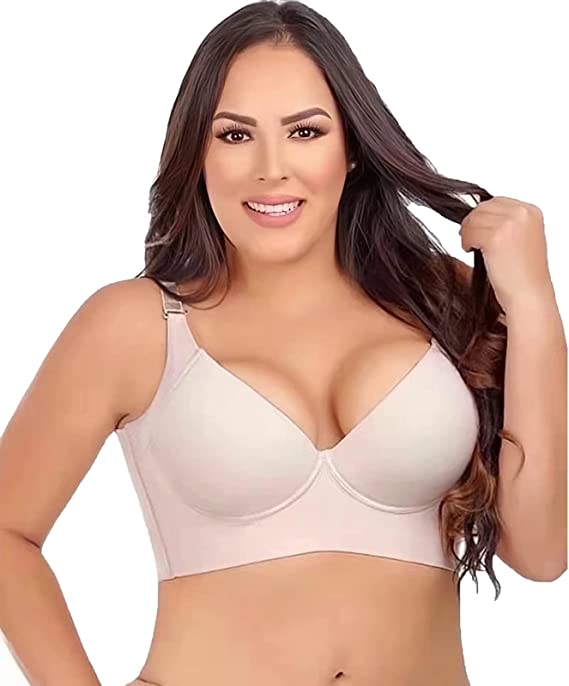 The deep cup bra is great to use for a smoother look under clothing. This bra helps to hide back fat, and side bra bulge, and gives a lift while on!A3/4 cup design provides better coverage and lifts breasts. Full-back coverage for added support and relief. No curling on the back!