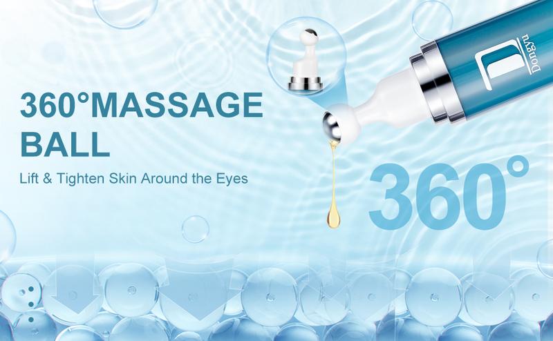 CONVENIENT AND SIMPLE TO USE-The Dongyu under eye serum is designed with an unique 360°cooling stainless steel roller-ball applicator, which works great when used in combination with our caffeine eye serum. The eye roller applicator can evenly distributes the eye serum around the eye area and provides a comprehensive massage of the eye contour.