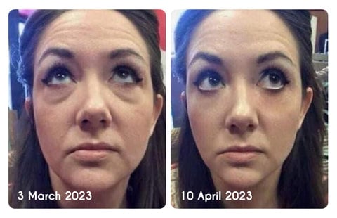 “I'd been really self-conscious since my husband had commented over my undereye bags last year. He loved my eyes the most and it must've been a lot if he was making this comment. I considered getting fillers done before my doctor suggested using this first because I had a slight allergy towards the fillers and HOLY MOLY did this thing changed my life in as soon as 3 weeks! I've been using it every night and by the end of February, this was the astounding result that I got! I've never sworn by any cosmetics products, but this one is the one for me!" - Jennifer Carlton (35), New York