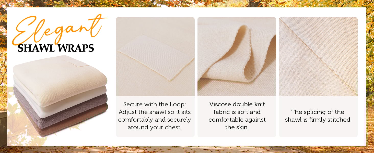This shawl wraps are perfect for evening dresses or wedding parties. They can also replace a blanket when traveling abroad or serve as a wrap for chilly evenings or cool summer nights. Their weight is just right for the office, indoor coolness, cruises, and various outfits.