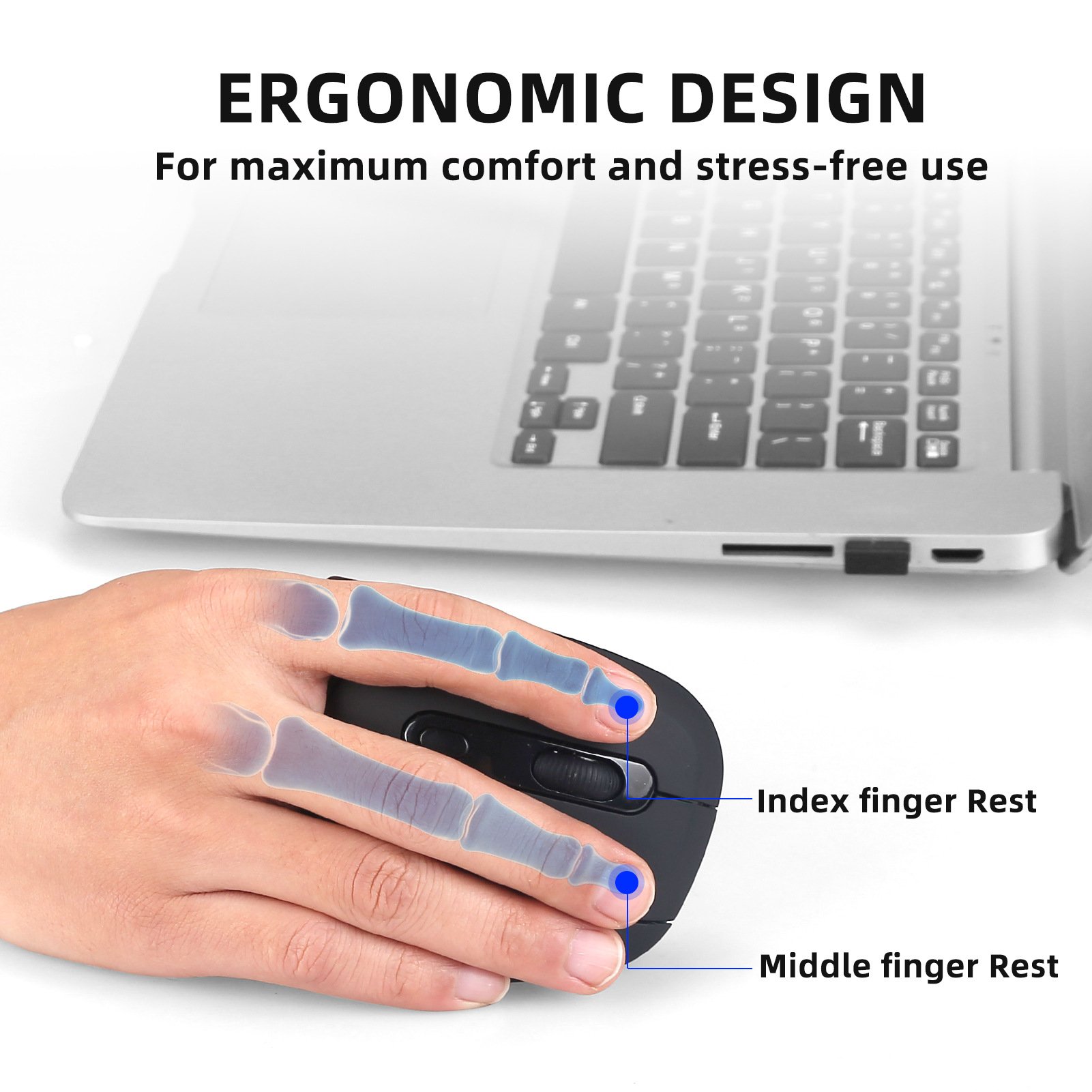 The ergonomic mouse wireless keeps your wrist naturally straight, putting your forearm and wrist in a more natural and relaxed position, which can reduce overall fatigue compared to a standard mouse.