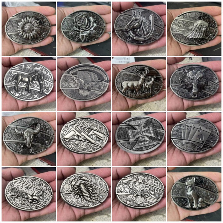 This genuine leather belt style is an interchangeable strap for your buckles. You can switch your buckles around with brass metal snaps (they don't show when a buckle is put on it). For a man or woman. It is 100% full grain leather, heavy duty yet supple. Belt is 1 1/2" in width, fits a buckle of this size or larger.