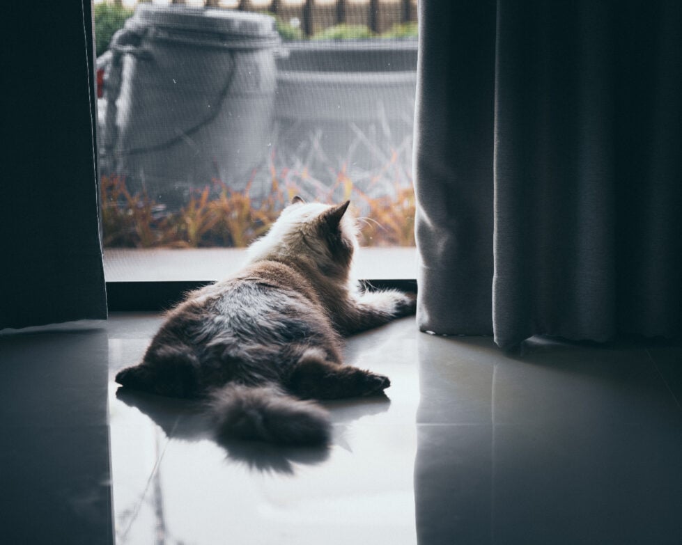 A bored cat that sleeps all day is an unhealthy cat. It's important to provide them with stimulating toys they can use even if you're not there.