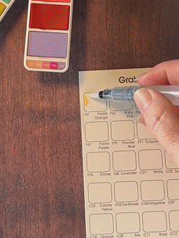 Including 1 swatch sheet, 10 Metallic Colors, 10 Macaron Colors and 36 Classic Colors with 1 Water Brush Pen for Artists