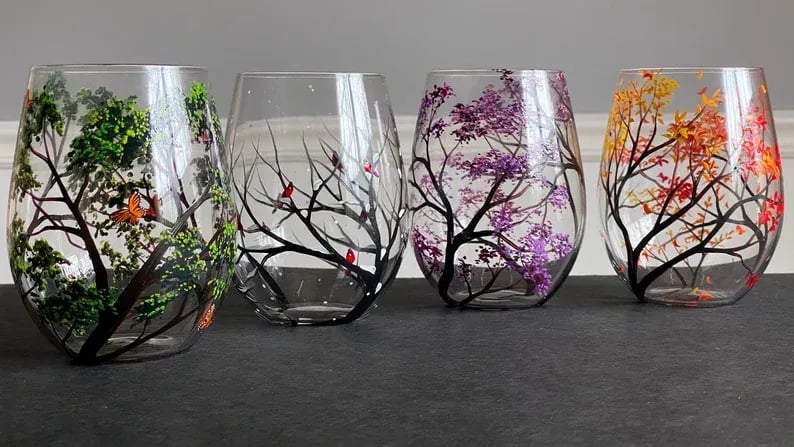 🍂The intricate design features a beautiful tree that changes with the seasons, representing the natural cycle of life. The delicate branches and leaves are painted in stunning detail, capturing the beauty of each season. These glass are not only functional but also a work of art that will impress your guests and add a touch of elegance to any occasion.