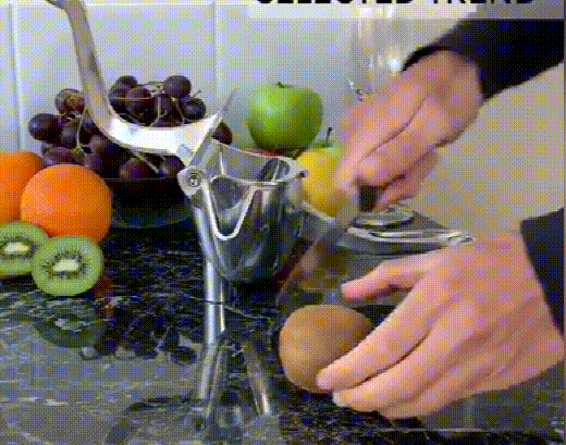Place the fruit in the container with holes and press the handle so that the juice flows out of the juicer.