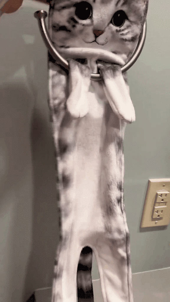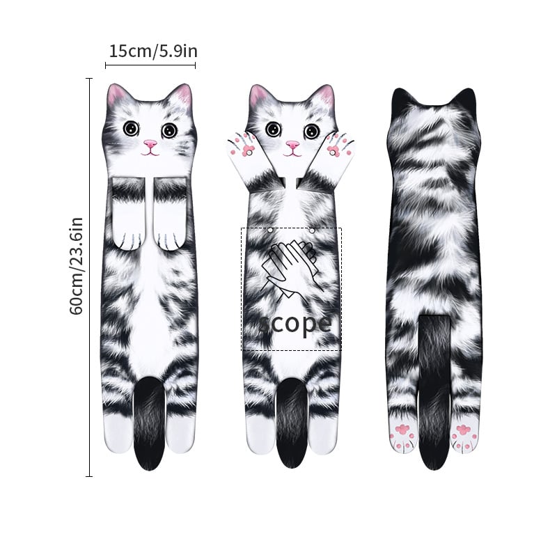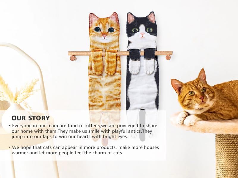 [High-Quality Fabric] : Made of 85% polyester and15% nylon, the fabric is soft, comfortable, and highlyabsorbent, suitable for drying hands and faces.The cathead is made of special material, allowing it to stayupright when hung!