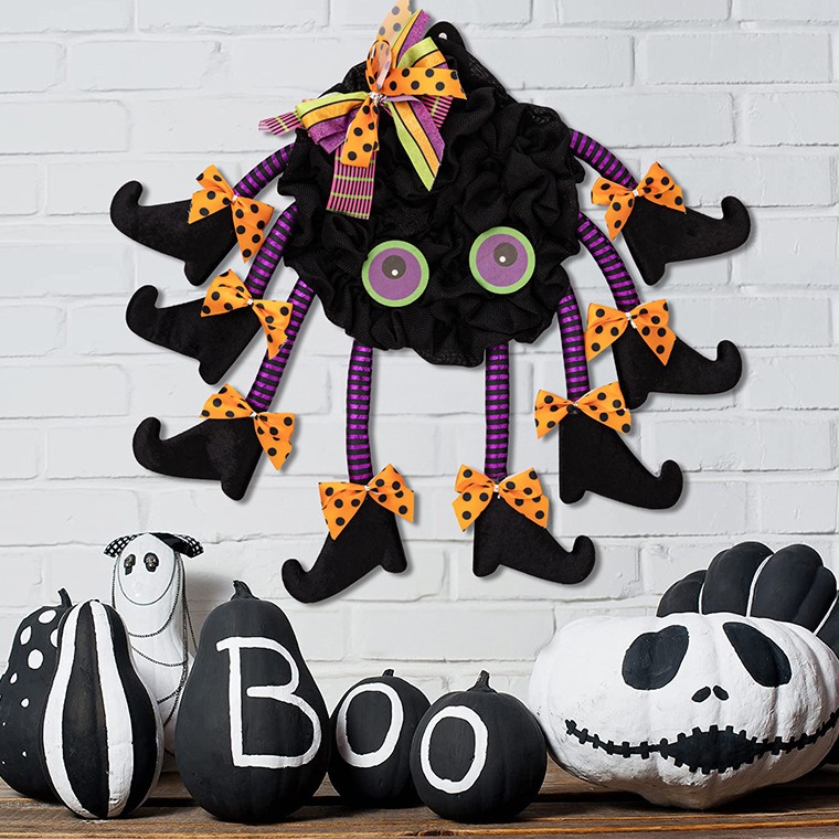 ♚Creepy Adorable Wreath: With big eyes, 8 witch legs, and a creepy vibe, this spider wreath will make a spooky impression on your guests. This is a great way to enhance your Halloween decor with a spooky yet classy style.