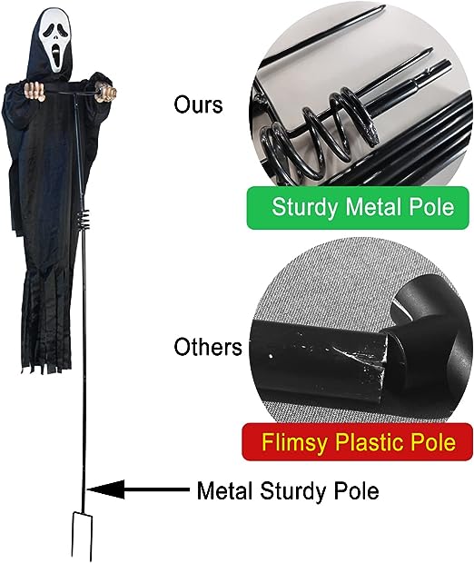 Every part of our skeleton scarecrow can be disassembled, so you only need to connect each part manually to get a vivid Halloween Scream ScareCrow and disassemble when you longer need it.