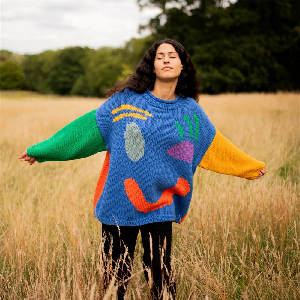The oversized jumper shape is boyfriend style, high level slouchy and the perfect knitted jumper for anyone wanting to feel comfy.