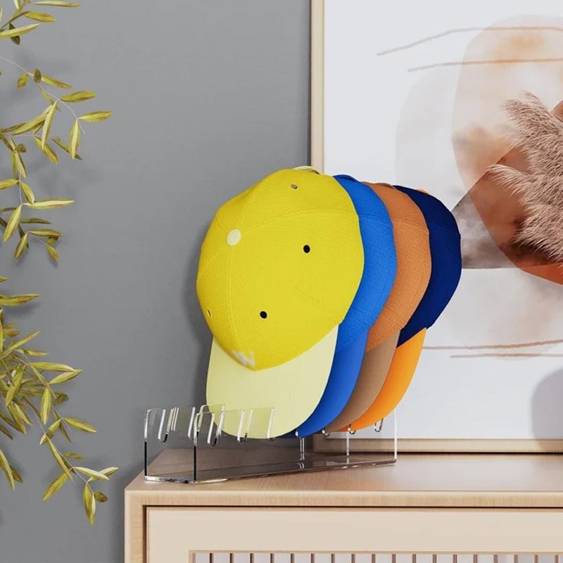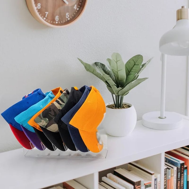 The hat rack made of 100% acrylic is a great addition to room accessories and decor. Your room can be decorated in any style. Keep all your baseball caps in a different place - closet, bedroom, hallway, living room, garage, or storage rack.