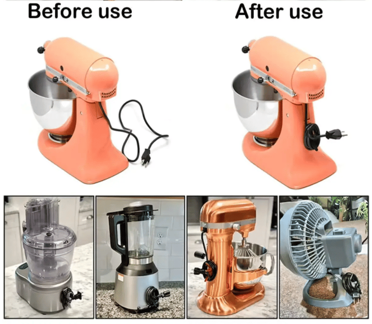The kitchen cord organizer can be used for all kinds of kitchen utensils, such as mixers, coffee machines, blenders, air fryers, toasters, pressure cookers, juicers, etc.