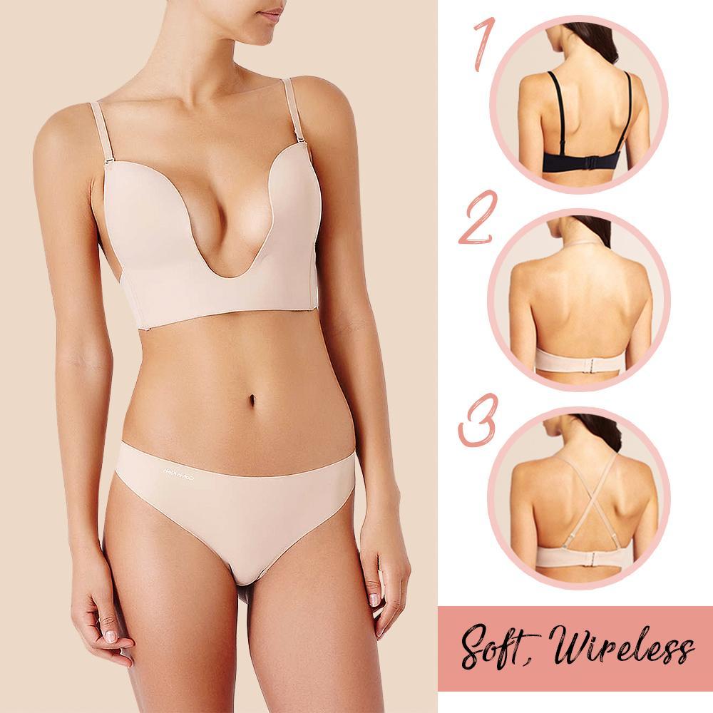 LiftUp Low Back Plunge Bra boosts that ample cleavage underneath your backless outfit invisibly!
