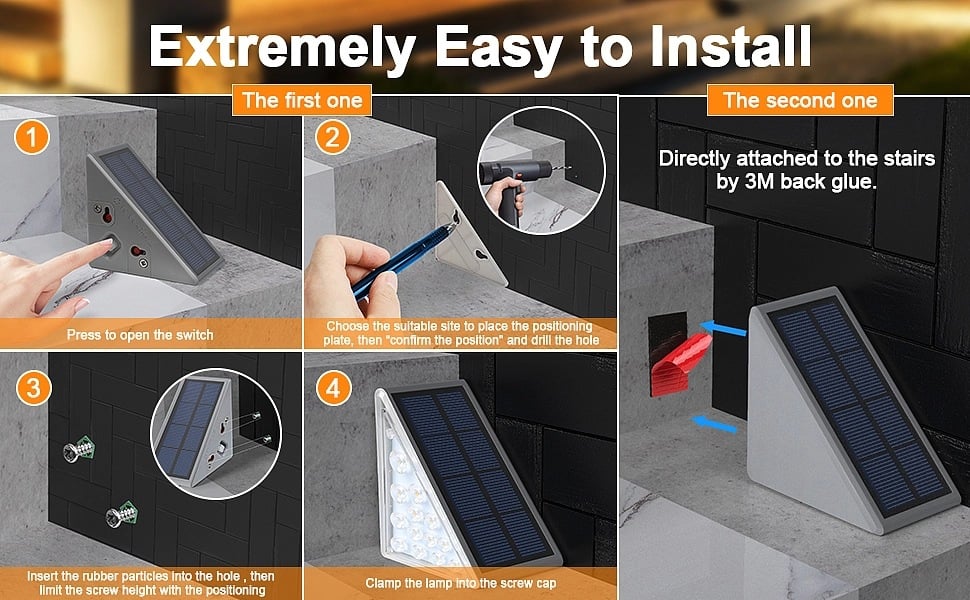Effortless Energy Efficiency: No more tangled cables and high electricity bills! Our waterproof LED solar step lights harness the power of the sun to illuminate your outdoor areas, providing bright and reliable lighting without ever requiring a power outlet.