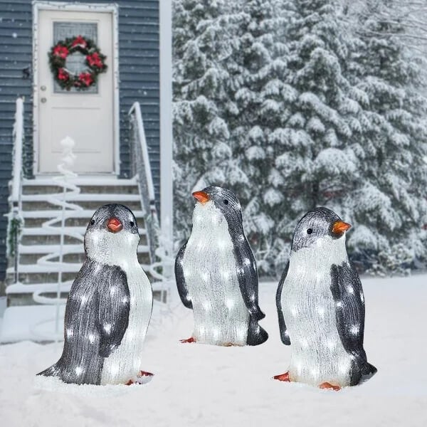 Each Light-Up Penguin Christmas Ornaments is made from acrylic, durable, weather-resistant and waterproof. The Penguin yard art will perfectly display in your yard for a long time even in rain, sun exposure and windy days.