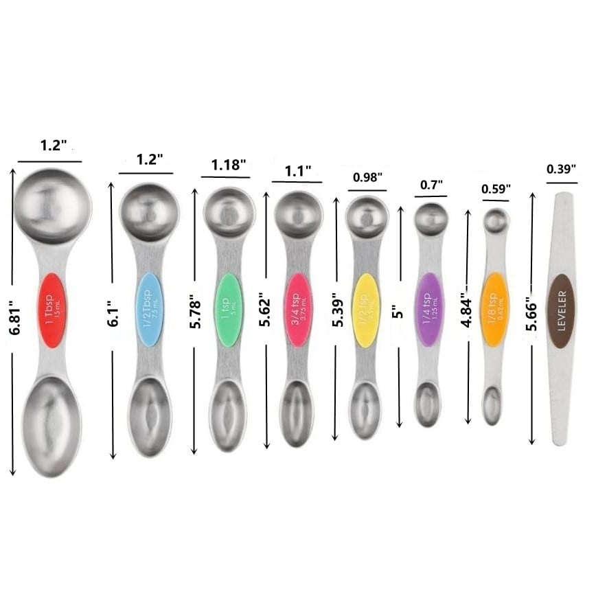 The magnetic feature of the spoons allows for easy storage, while the cups come with a ring hook for effortless hanging.