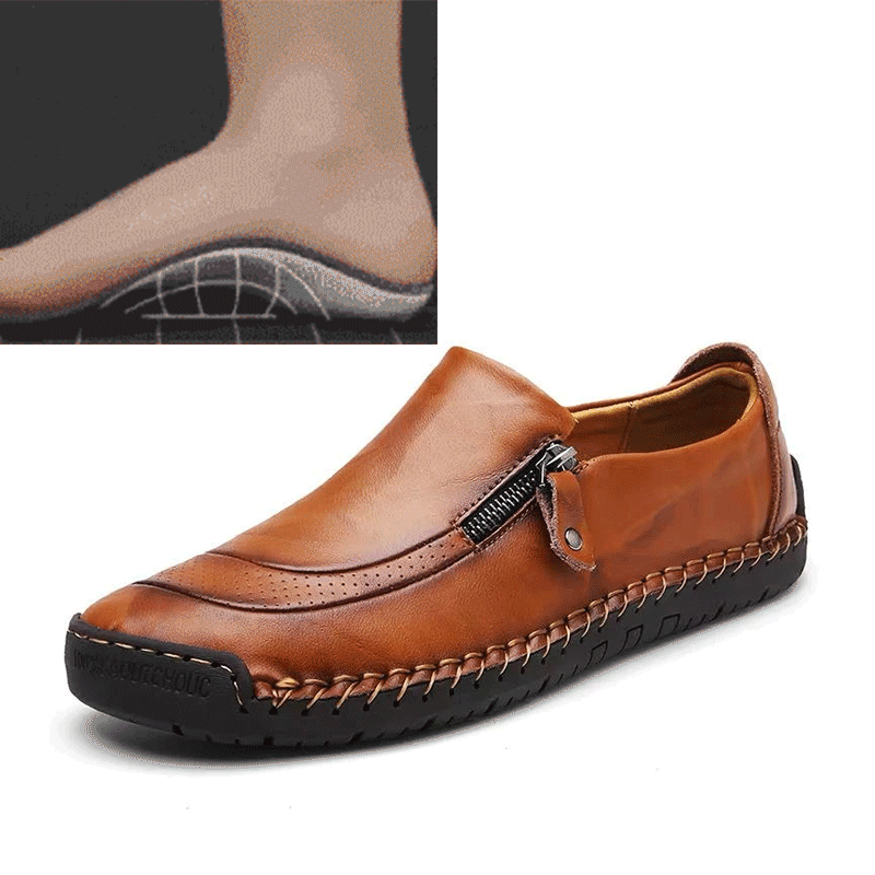 Meet Grishay Men's Arch Support Flat Shoes. The unique design provides perfect fit and gives you stylish look on any occasion. Made of breathable, high-quality leather, you can enjoy the real feeling of "walking on cloud". Durable and soft artificial leather upper can withstand years of wearing. These sneakers are designed to outlast many summers to come with their high-quality composition. You can keep your feet cool and dry all day with the antibacterial shield