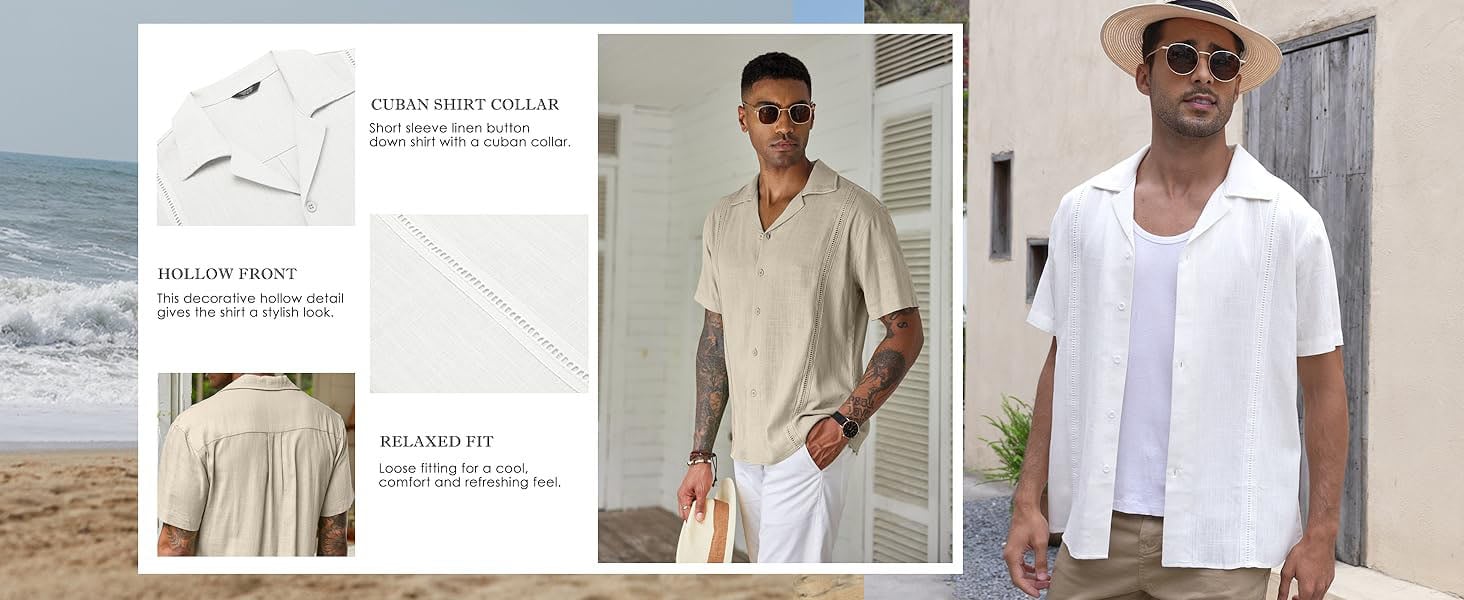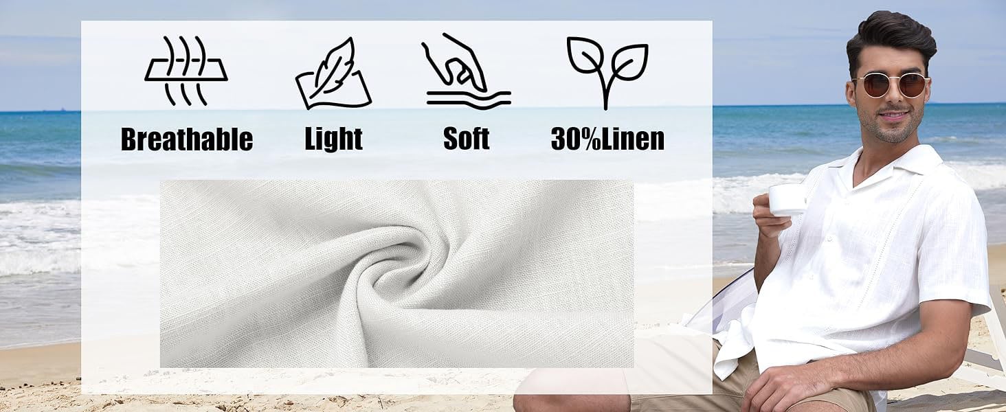 Look!Our stylish and versatile Men's Knit Button-Up Short Sleeve Linen Shirt!