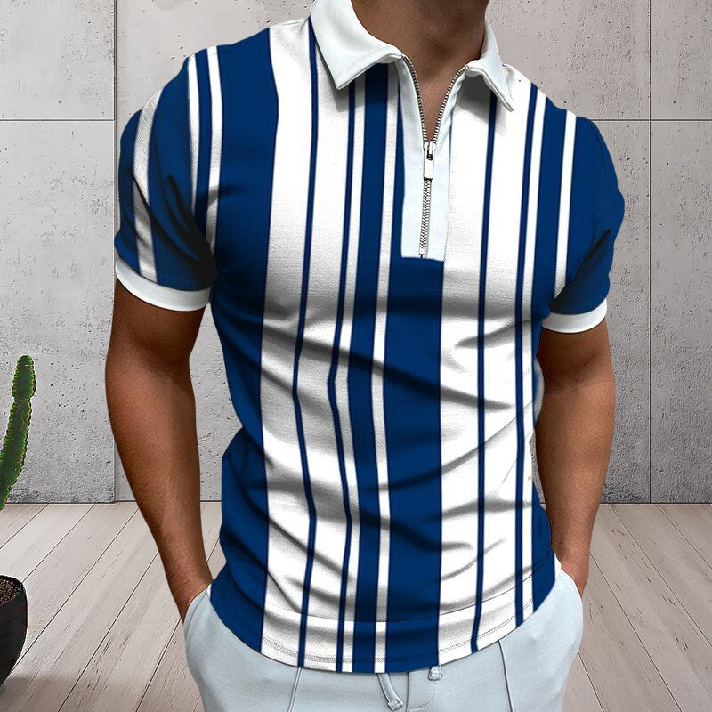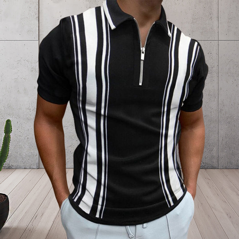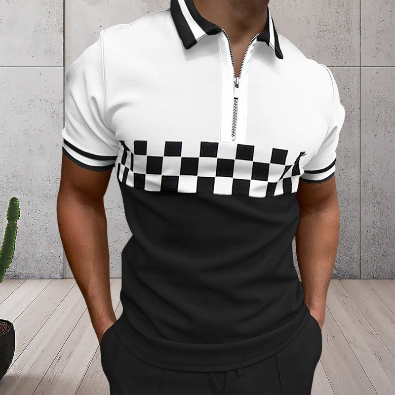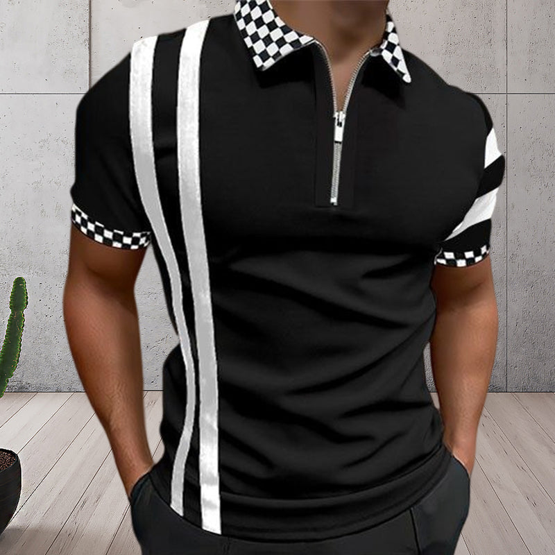- 1*Men's Colorblock Zip Polo Shirt