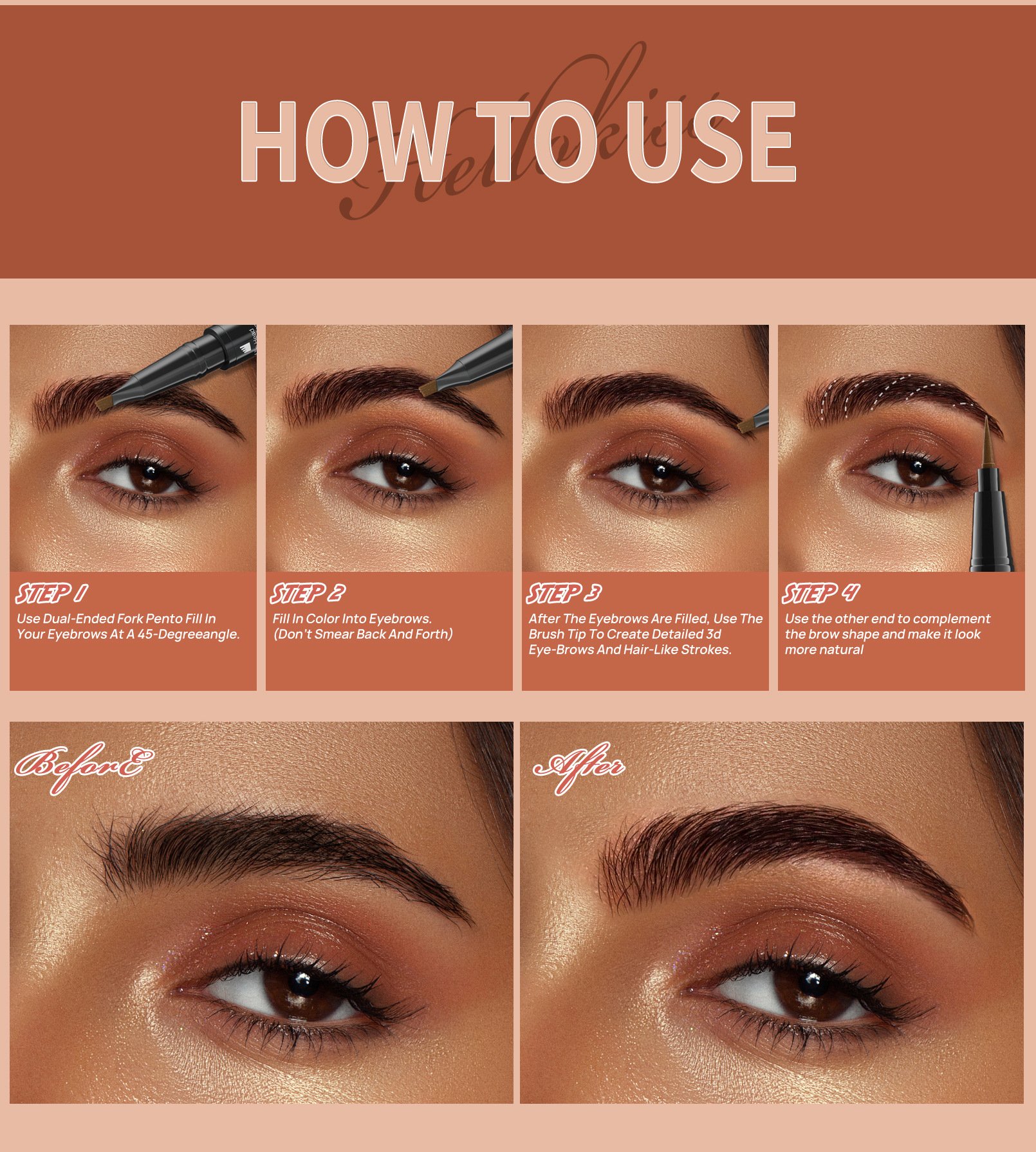 IMPORTANT: GENTLY SHAKE the eyebrow pencil up and down before use. When NOT in use, ALWAYS keep the cap TIGHT! Make sure you hear the CLICK when closing it! Store the pen FLAT! CLEAN YOUR BROW AREA BEFORE USE TO AVOID THE TIP FROM GETTING CLOGGED BY LOTIONS.
