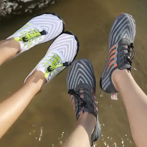 ✓ Thanks to the breathable material, your feet remain well-ventilated at all times. Enjoy the warm spring and summer without worrying about sweaty feet. Additionally, these shoes dry extremely quickly due to the material, making them ideal for water activities as well!